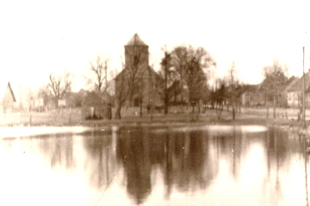 Mało kto wie, co to za budynek na fotografii wyżej. Tak, tak to stara szkoła, przebudowana w 1901 roku do stanu obecnego. Pozostały trzy okna po lewej stronie, schody wejściowe, komin po lewej stronie i rosnąca do dziś lipa, a wewnątrz konstrukcja dawnego dachu w układzie szczytowym.
